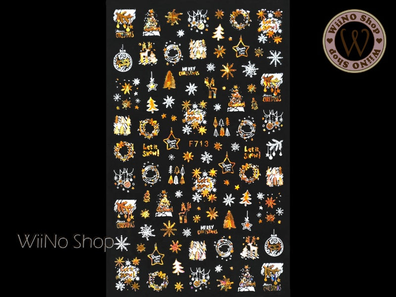 Let it Snow Gold Holographic Adhesive Nail Art Sticker - 1 pc (F713-GH)