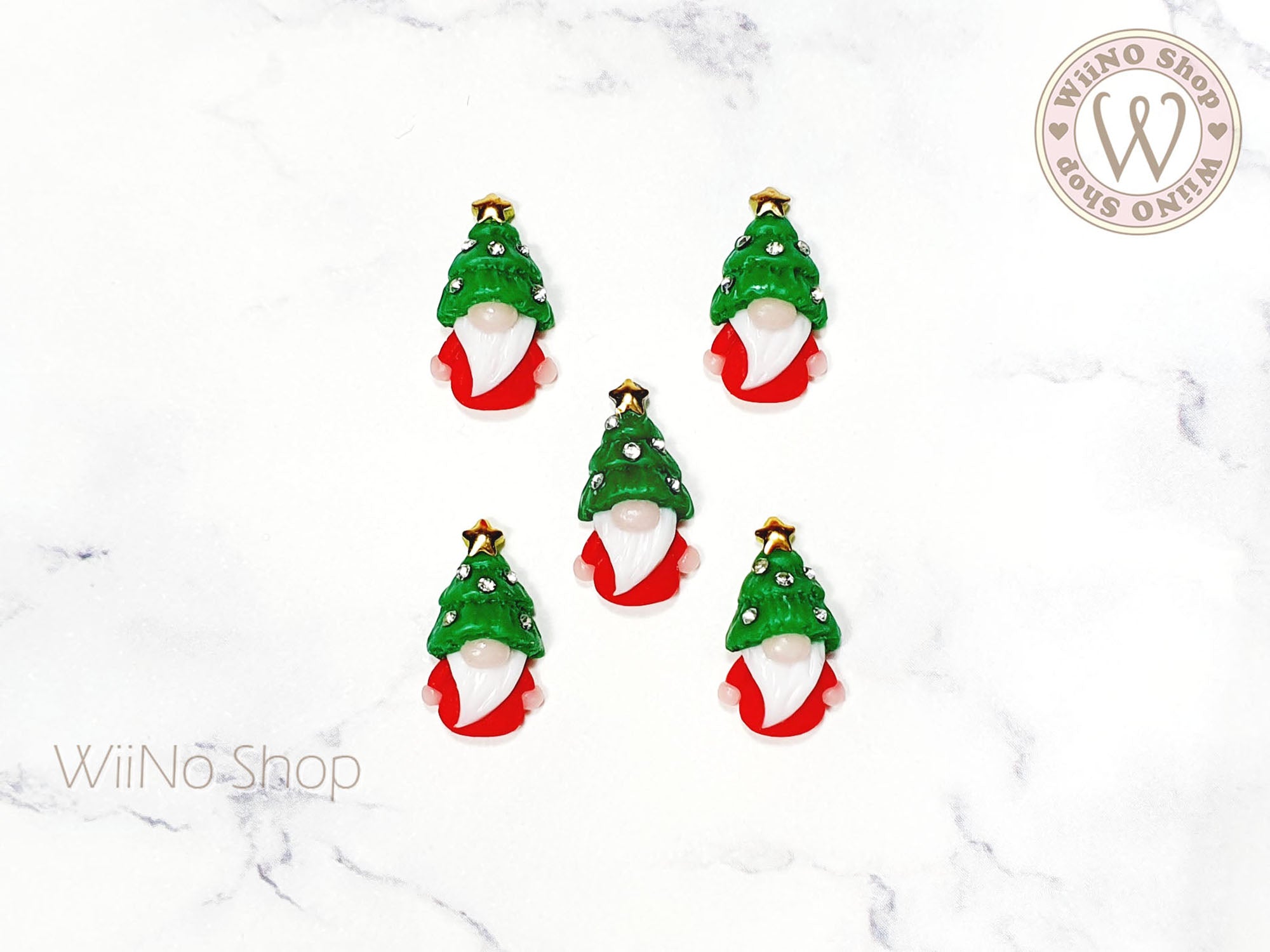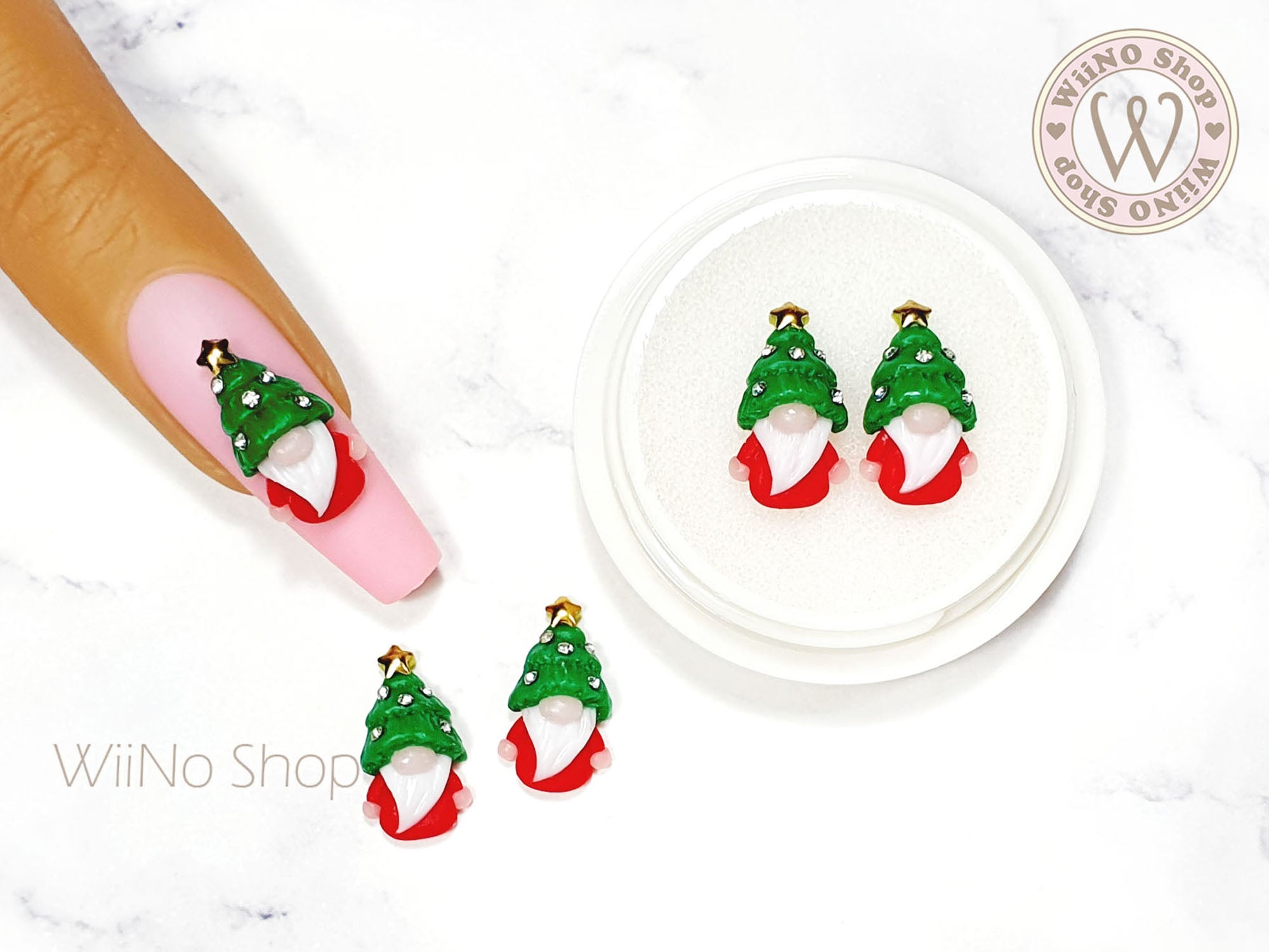 Christmas Tree Hat Gnome 3D Handmade Nail Art Charm - 2 pcs