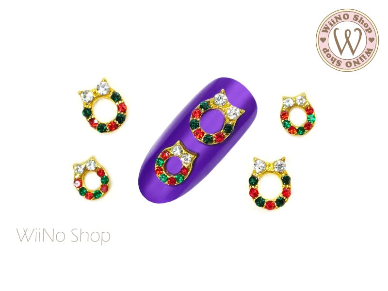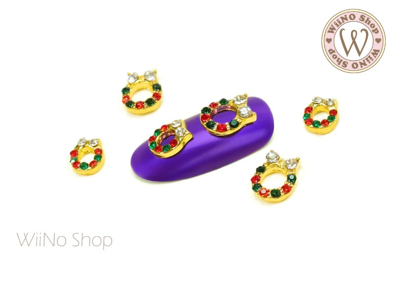 Christmas Crystal Wreath Nail Metal Charm - 2 pcs (WR01)