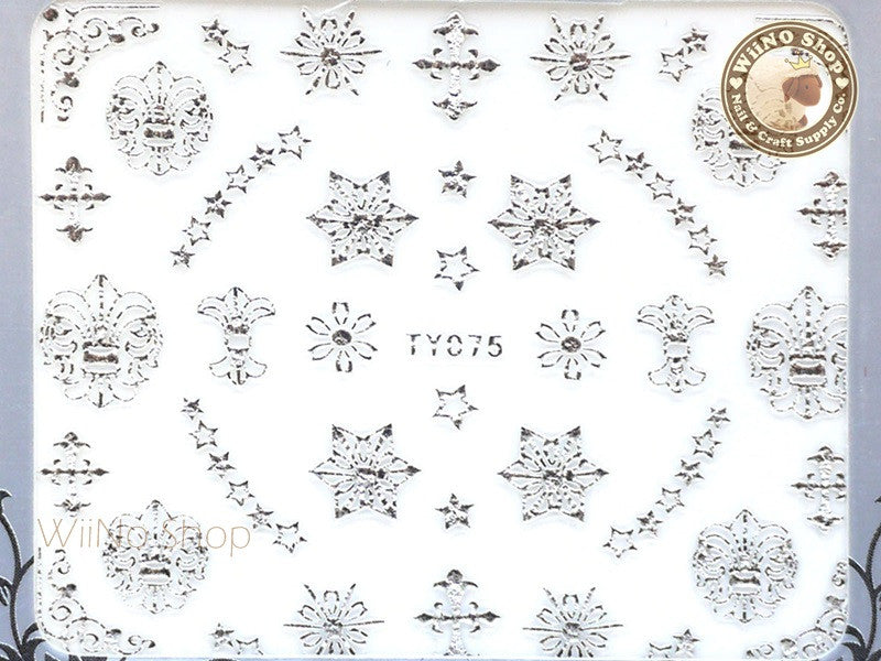 Silver Star Fleur De Lis Adhesive Nail Sticker Nail Art - 1 pc (TY075S)