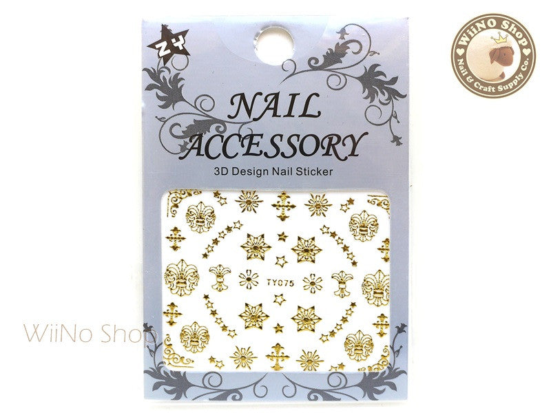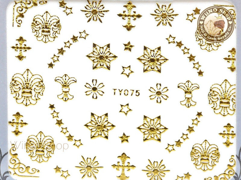 Gold Star Fleur De Lis Adhesive Nail Sticker Nail Art - 1 pc (TY075G)