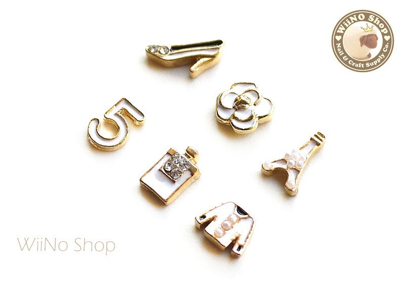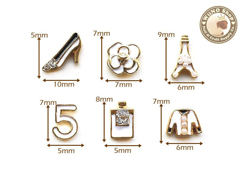 White CoCo Fashion Nail Metal Charm Nail Art - 6 pcs