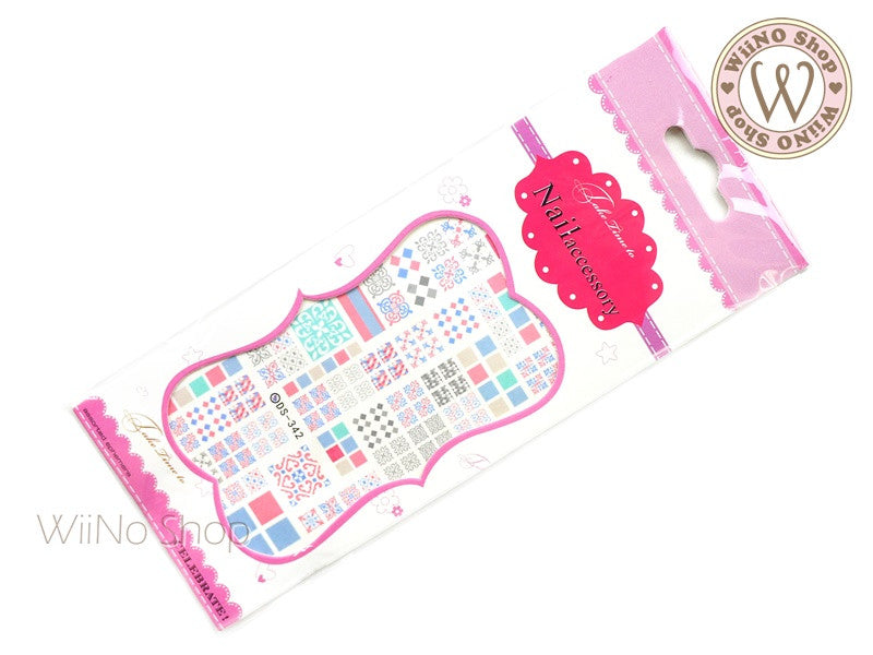 Colorful Moroccan Mosaic Pattern Water Slide Nail Art Decals - 1pc (DS-342)