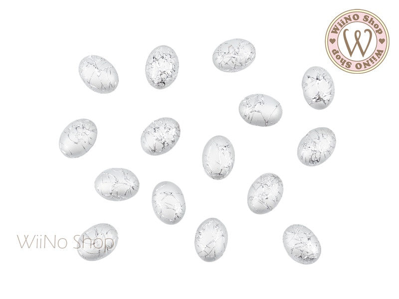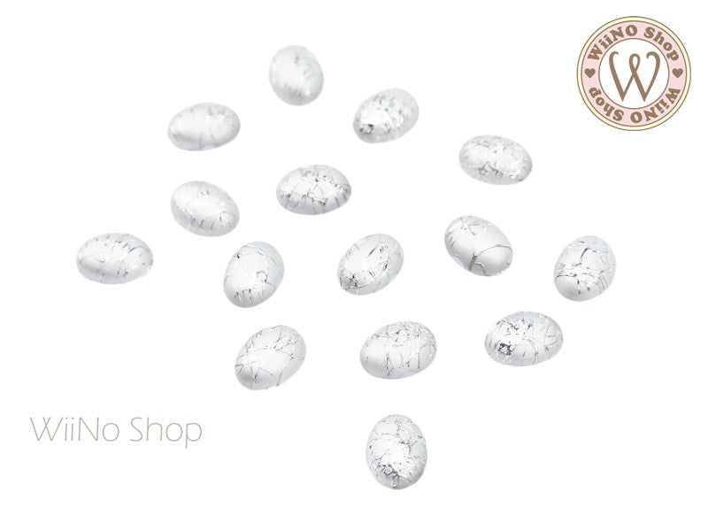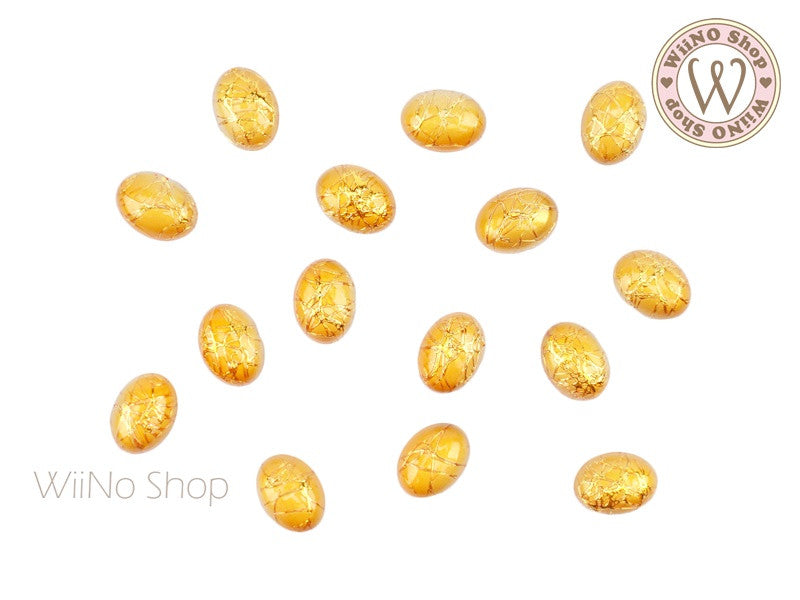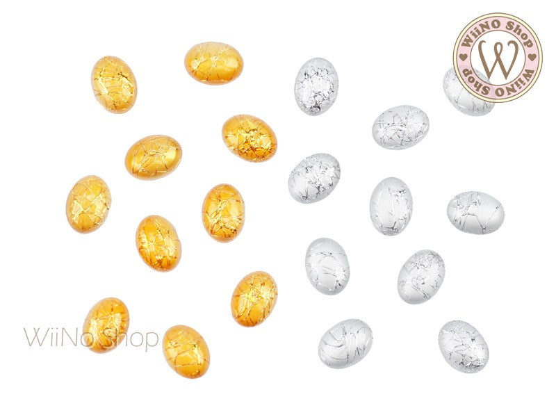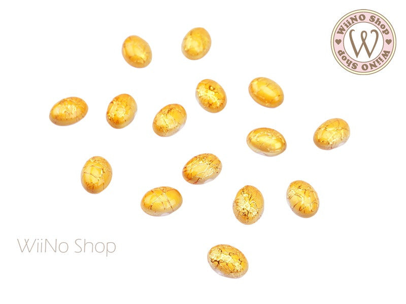 6 x 8mm Gold Silver Silk Pattern Oval Acrylic Cabochon - 10 pcs