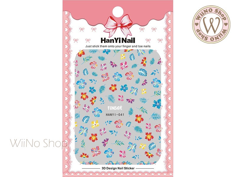 Colorful Hibiscus Adhesive Nail Art Sticker - 1 pc (HY-041)