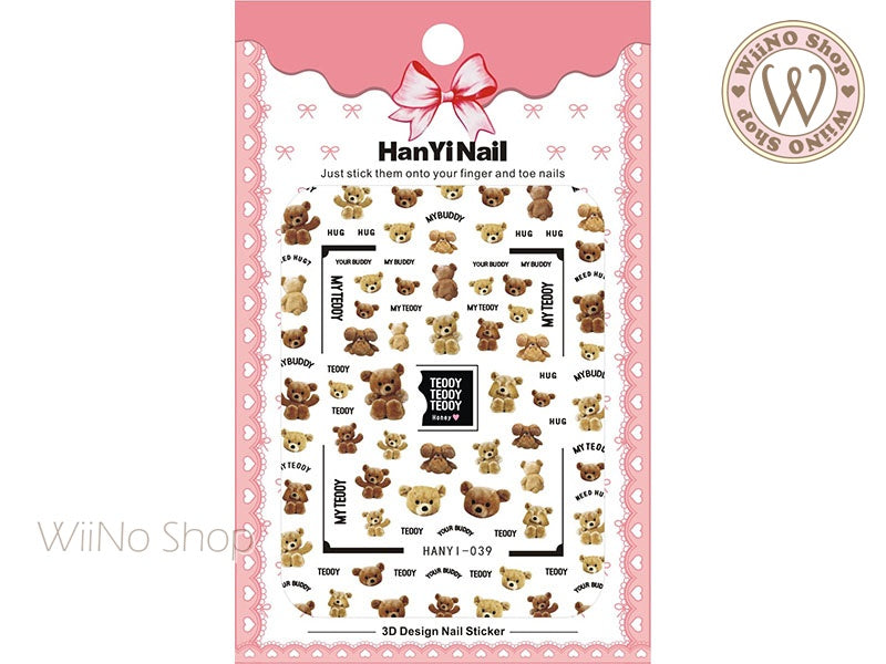 Teddy Bear Adhesive Nail Art Sticker - 1 pc (HY-039)