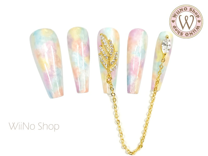Feather Crystal Nail Jewelry Charm with Chain - 1 pc