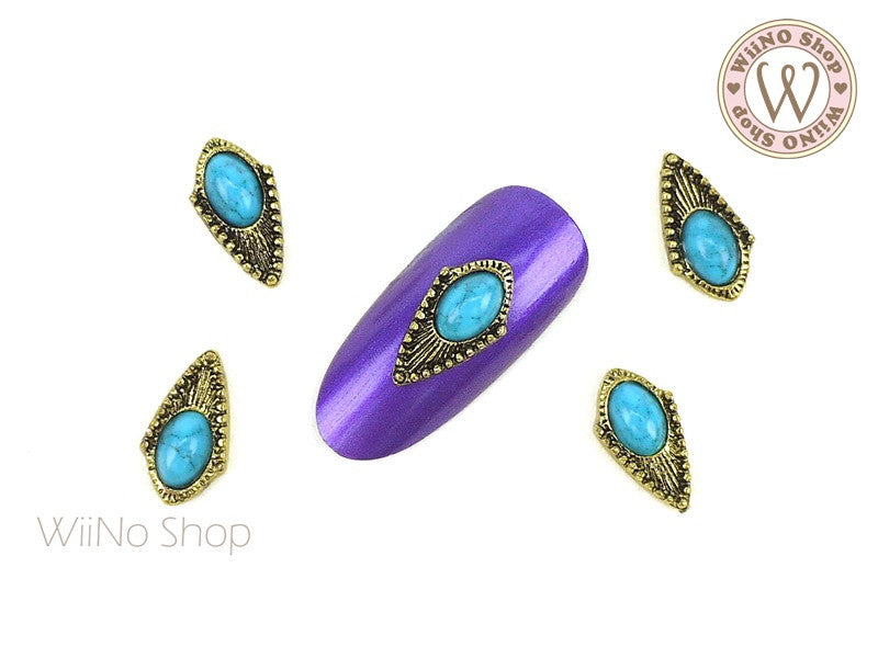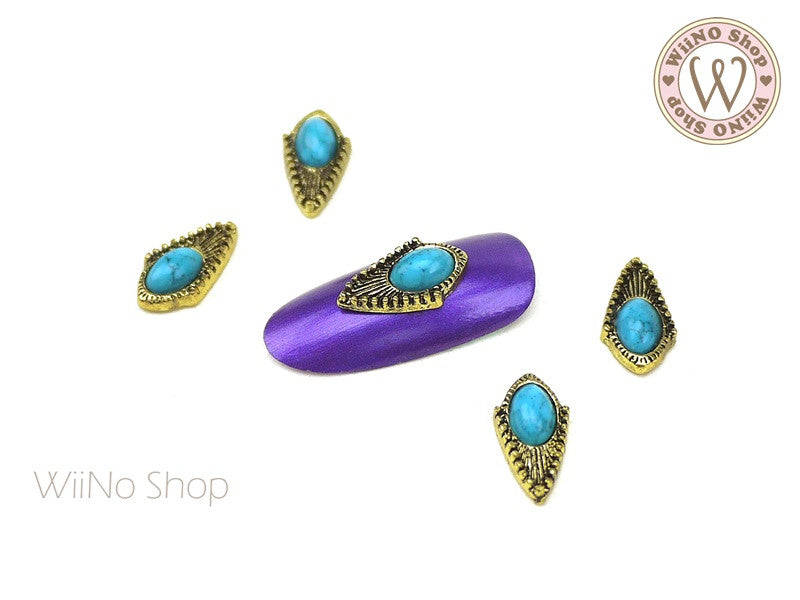 Turquoise Vintage Gold Bohemian Shield Nail Metal Charm - 2 pcs