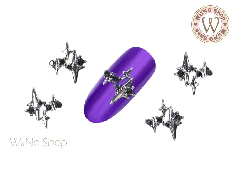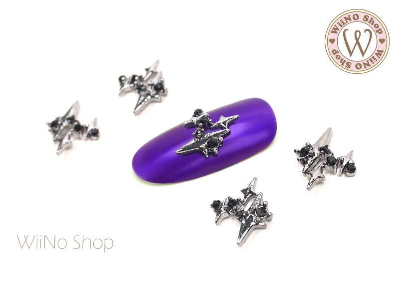 Cross Star with Black Crystals Nail Metal Charm - 2 pcs