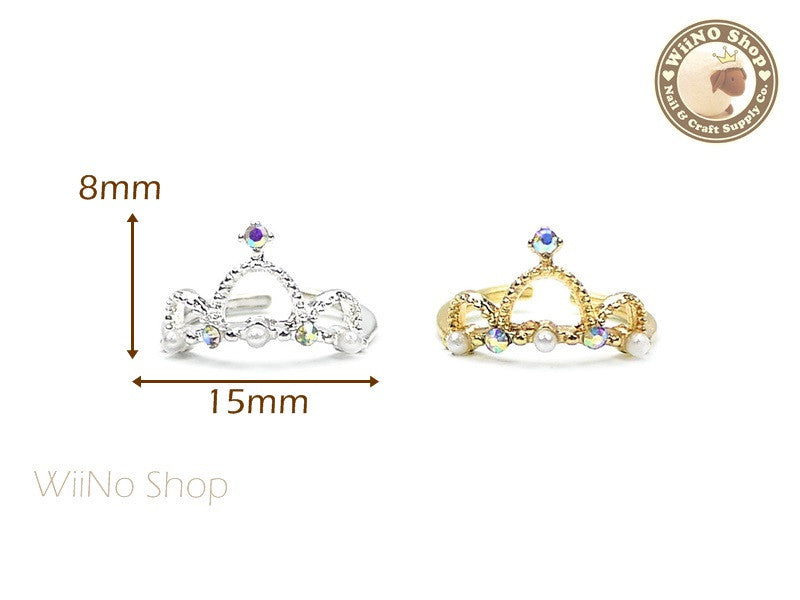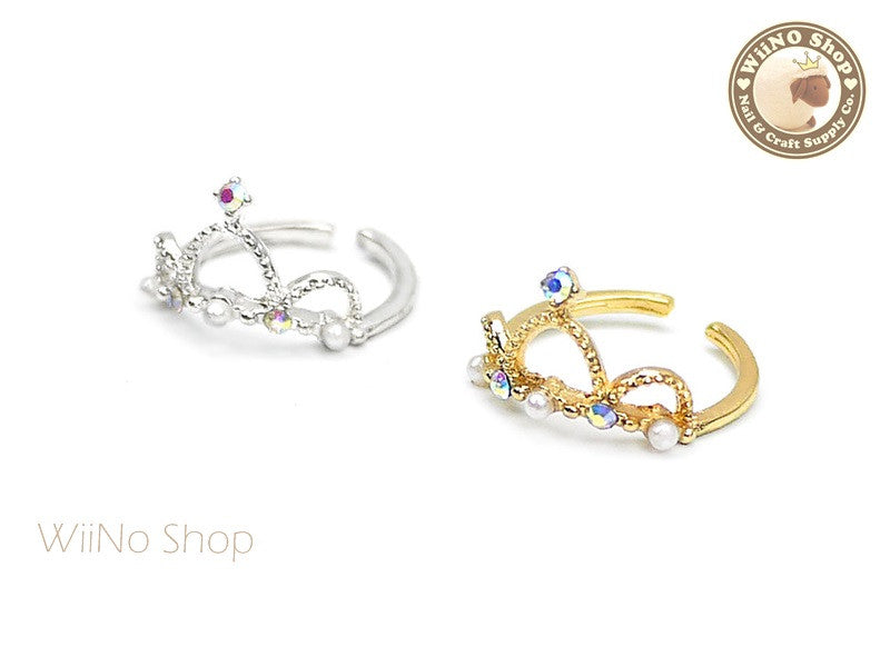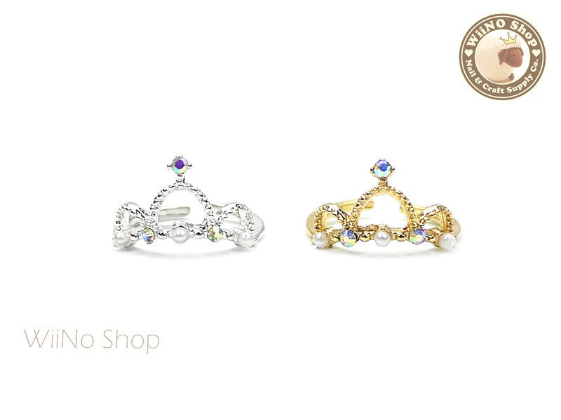 Crystal Pearl Crown Nail Ring - 1 pc