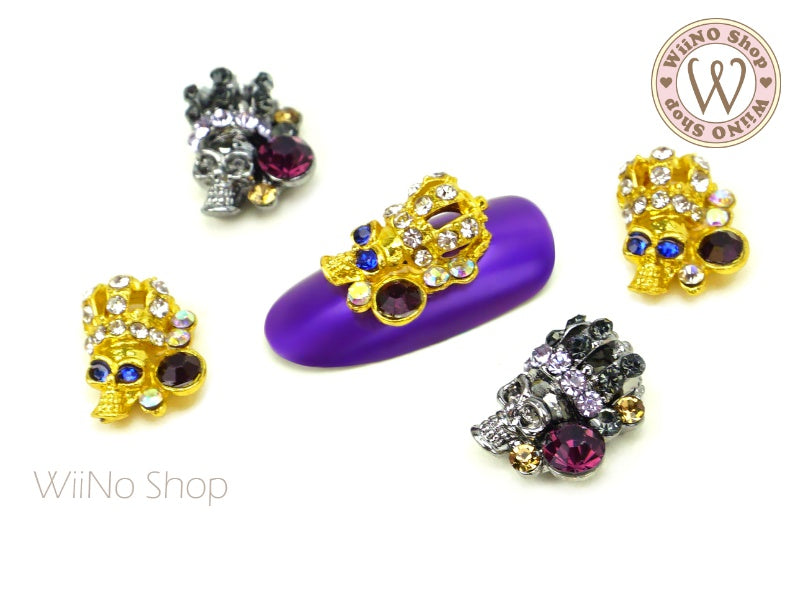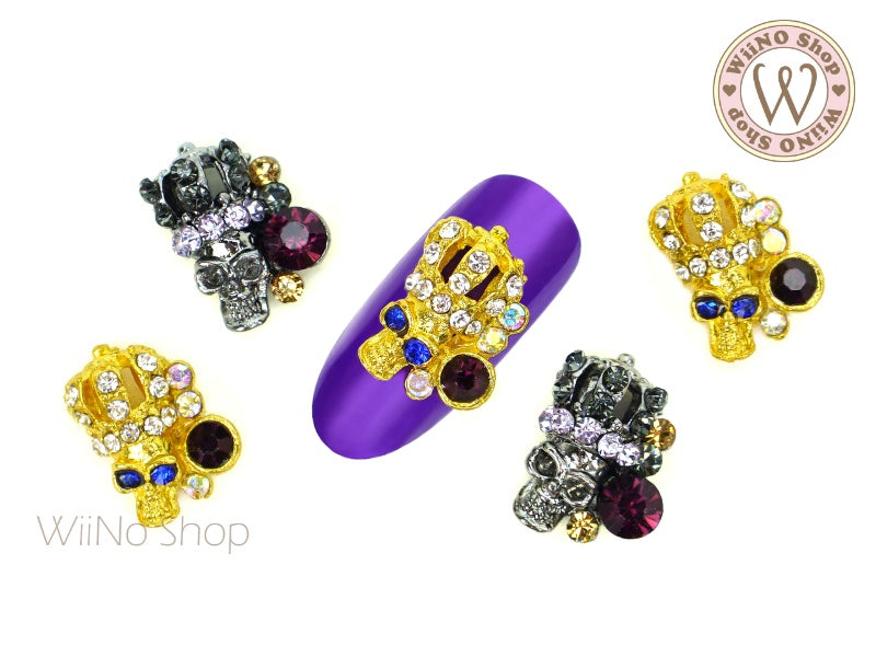 Crystal Crown Skull King Nail Metal Charm - 2 pcs