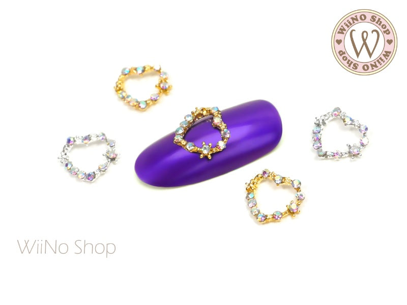 Crystal Flower Heart Nail Metal Charm - 2 pcs