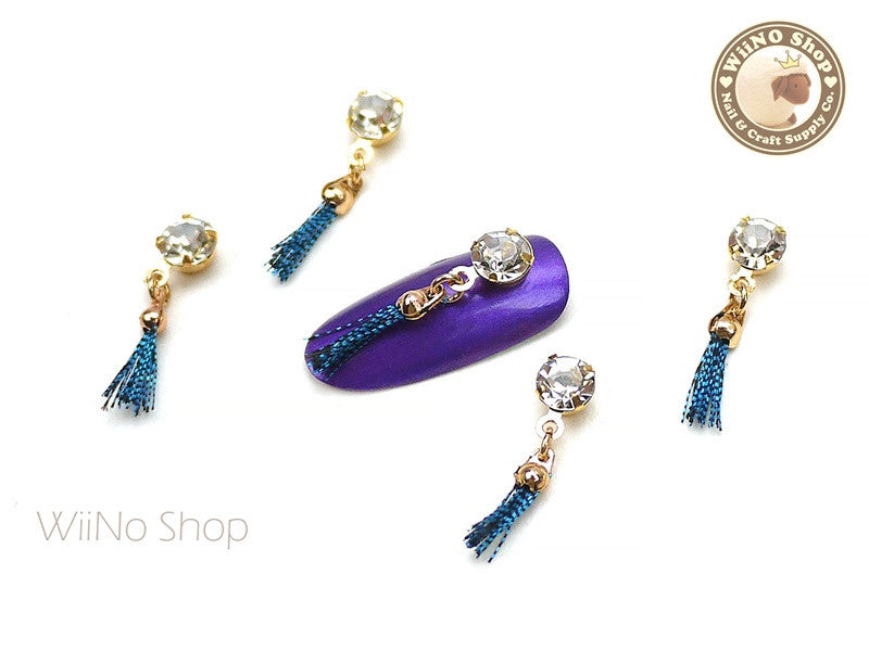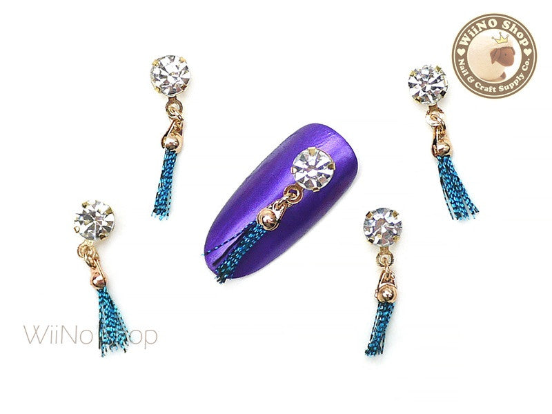 Crystal Turquoise Tassel Nail Art Charm - 2 pcs