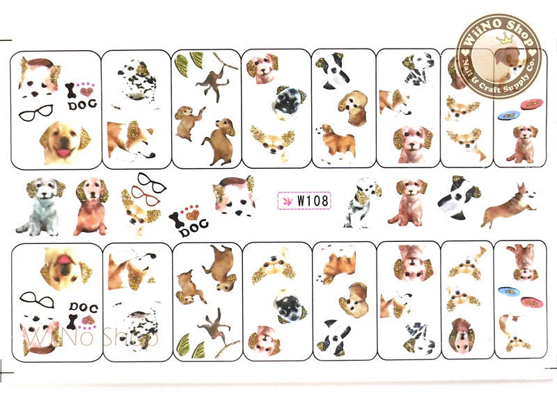 Dog Puppy Glitter Water Slide Nail Art Decals - 1pc (W108)