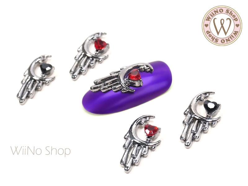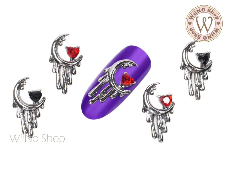 Dripping Moon with Heart Crystal Nail Metal Charm - 2 pcs