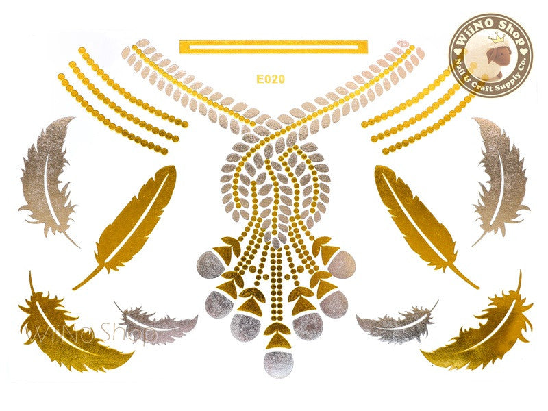 E020 Gold Silver Metallic Temporary Jewelry Tattoos - 1 pc