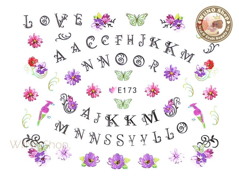 E173 Purple Floral & Letter Nail Sticker Nail Art - 1 pc