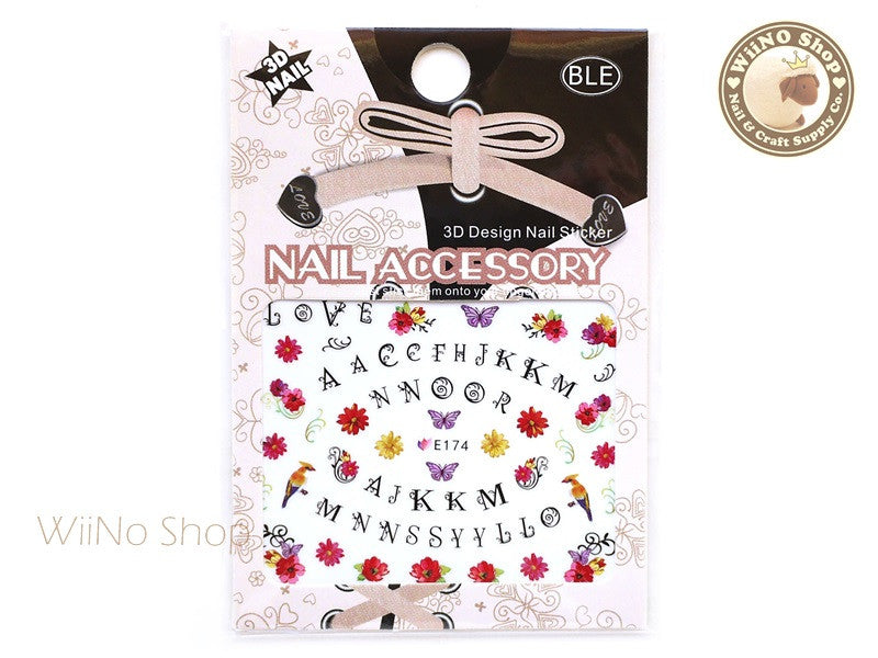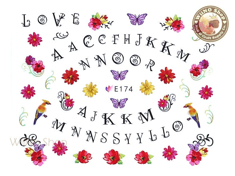 E174 Red Floral & Letter Nail Sticker Nail Art - 1 pc