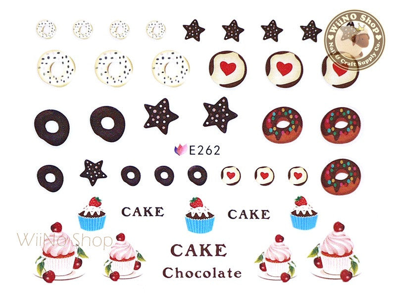 E262 Cupcak Donut Desserts Nail Sticker Nail Art - 1 pc