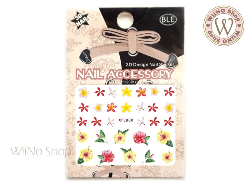 E800 Plumeria Hibiscus Adhesive Nail Art Sticker - 1 pc