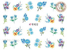 E922 Blue Watercolor Floral Adhesive Nail Art Sticker - 1 pc