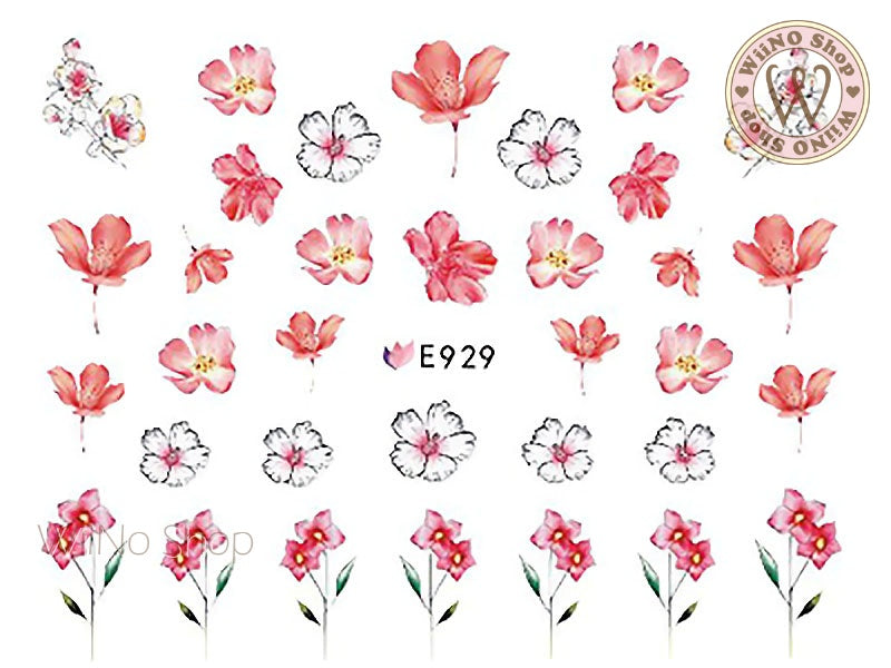 E929 Pink Flower Adhesive Nail Art Sticker - 1 pc