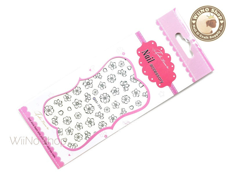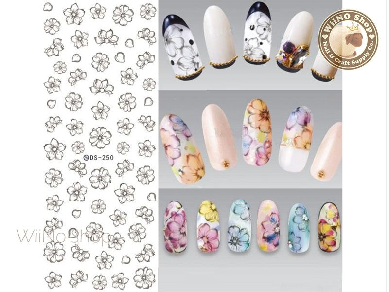 Black Outline Flower Water Slide Nail Art Decals - 1 pc (DS-250)