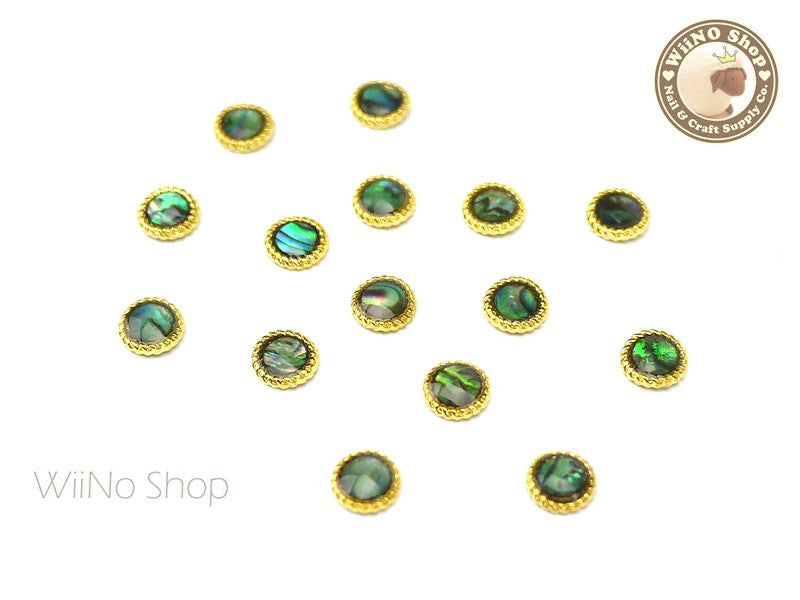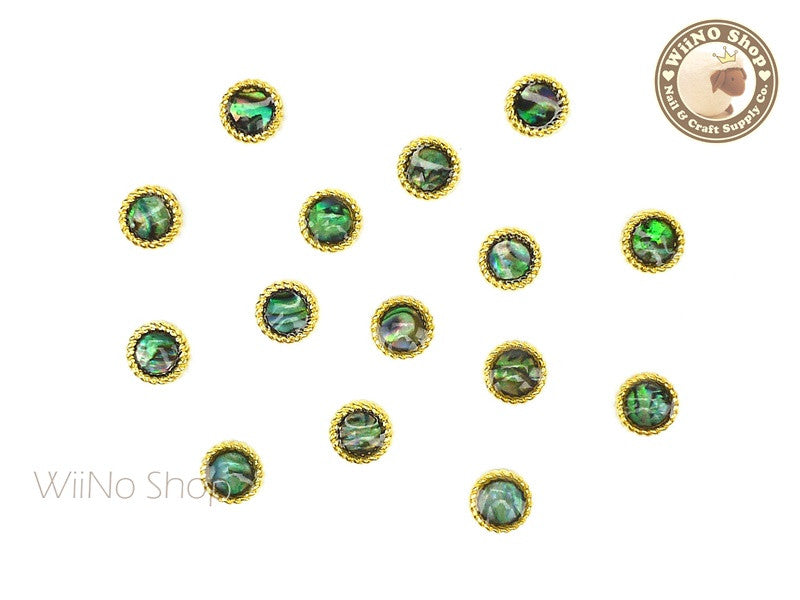 Green Natural Seashell Round Frame Nail Metal Charm - 2 pcs
