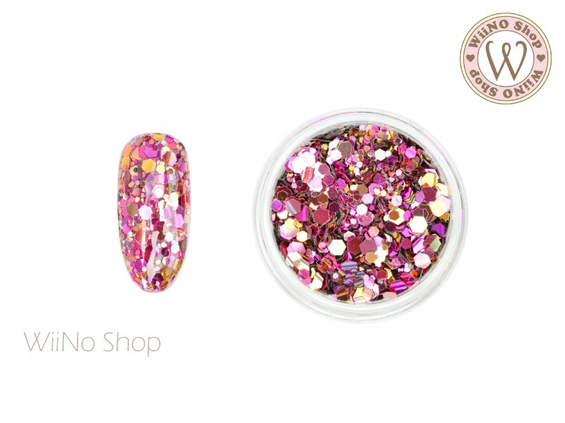 Fuchsia Ombre Hexagon Mix Sizes Glitter (HO03)