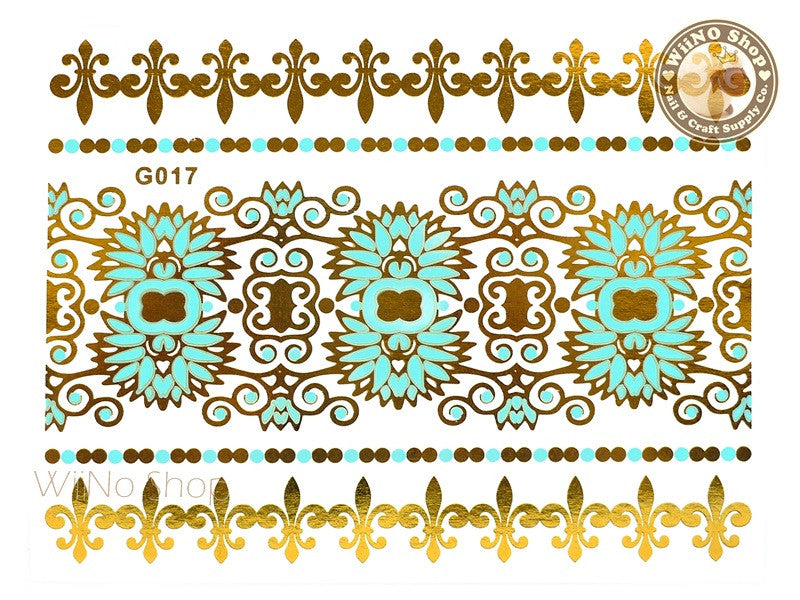 G017 Gold Turquoise Metallic Temporary Jewelry Tattoos - 1 pc