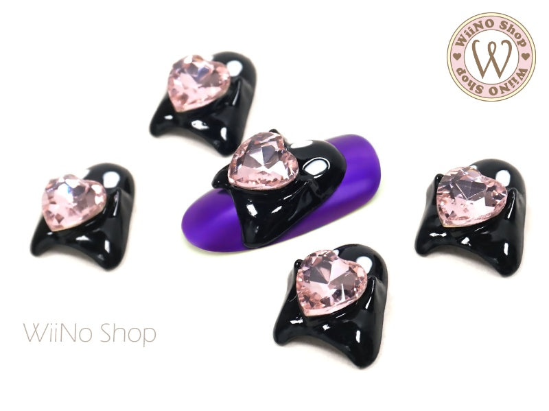 Ghost with Heart Crystal Nail Metal Charm - 2 pcs