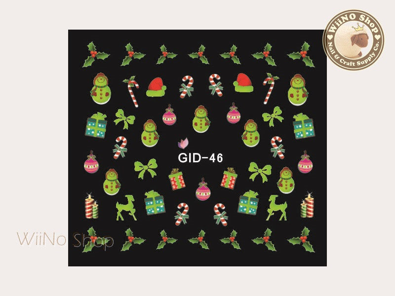 GID-046 Christmas Glow In The Dark Water Slide Nail Art Decals - 1pc