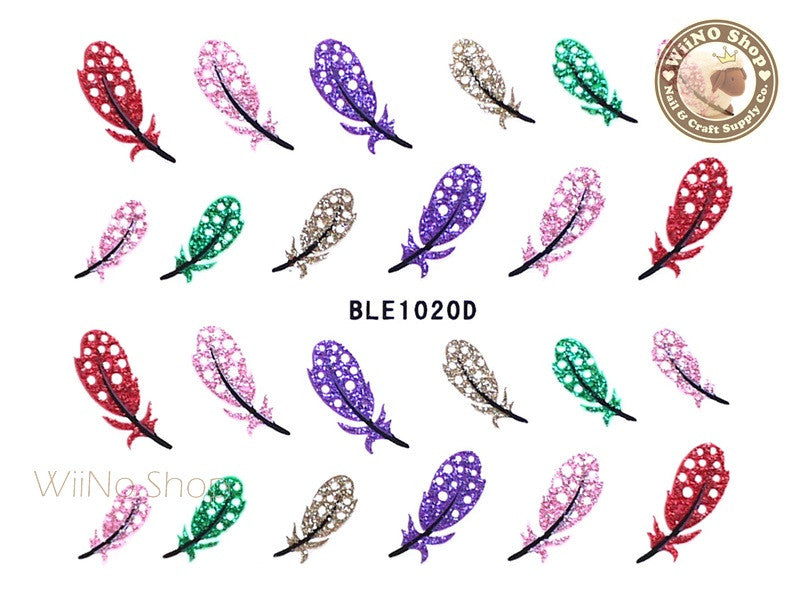 Glitter Feather Adhesive Nail Sticker Nail Art - 1 pc (BLE1020D)