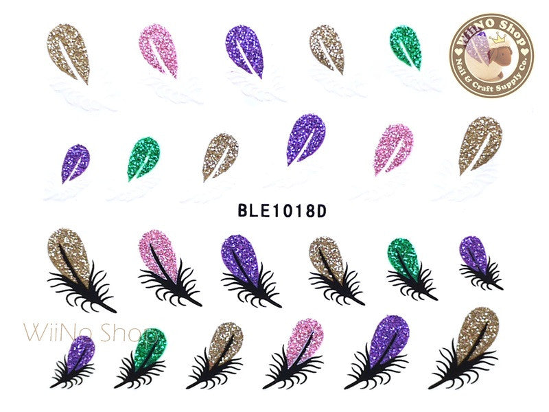 Glitter Feather Adhesive Nail Sticker Nail Art - 1 pc (BLE1018D)