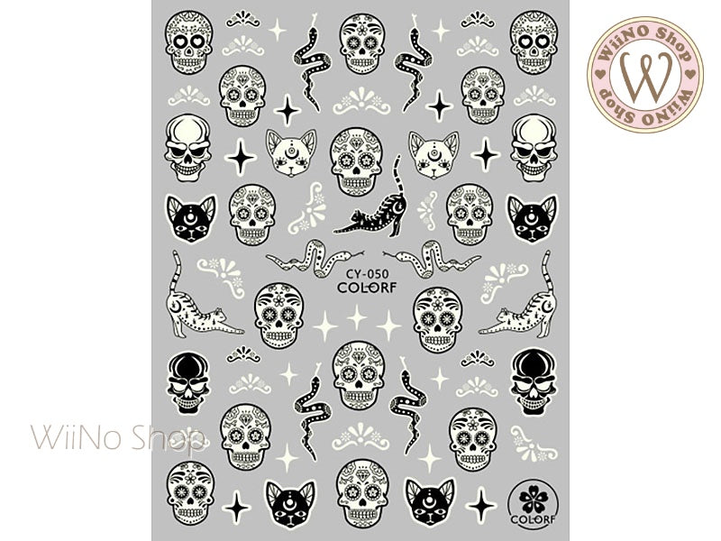Glow in the Dark Sugar Skull Adhesive Nail Art Sticker - 1 pc (CY-050)