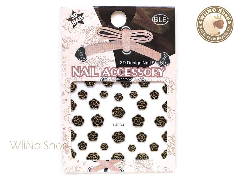 Gold Black Camellia Flower Adhesive Nail Art Sticker - 1 pc (TJ034GB)
