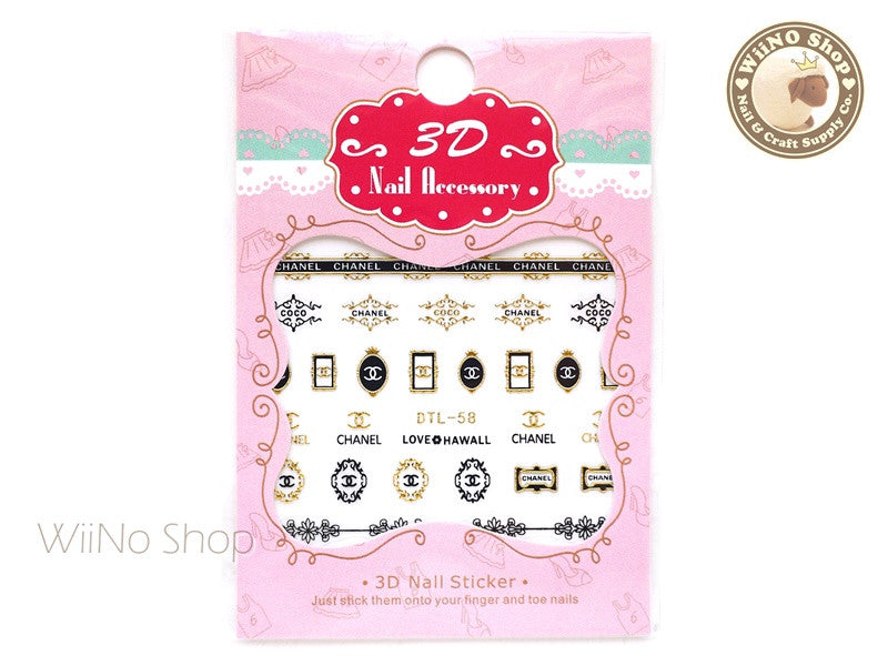 Gold Black CoCo Frame Nail Art Sticker - 1 pc (DTL-58G)