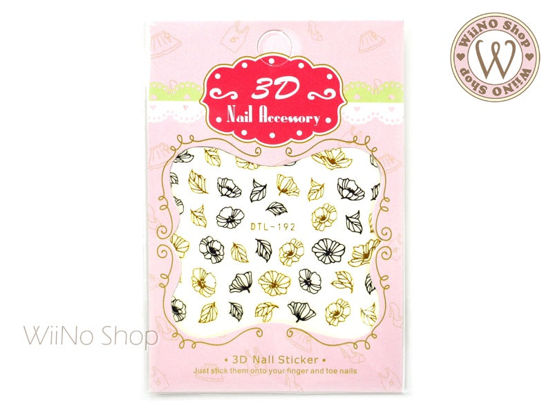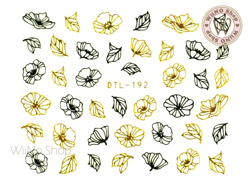 Gold Black Petunia Flower Nail Art Sticker - 1 pc (DTL-192GB)