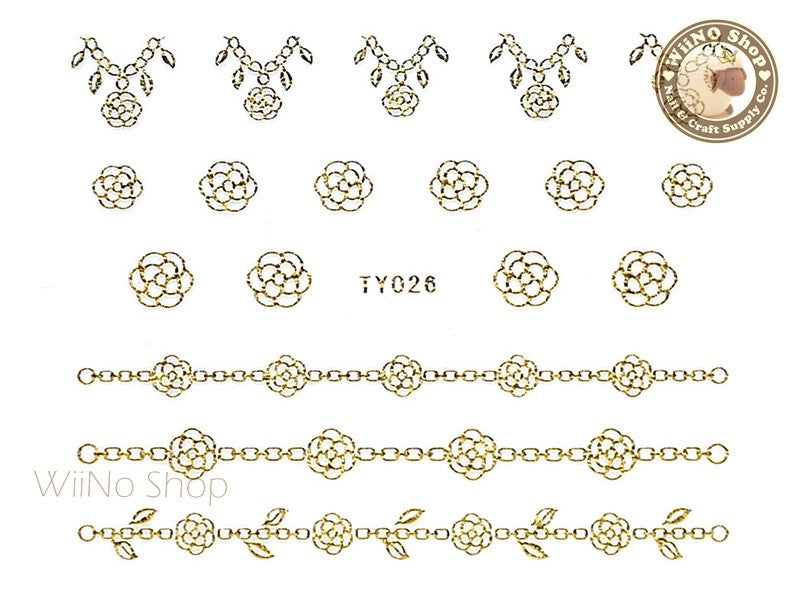 Gold Camellia Flower Chain Adhesive Nail Sticker Nail Art - 1 pc (TY026G)