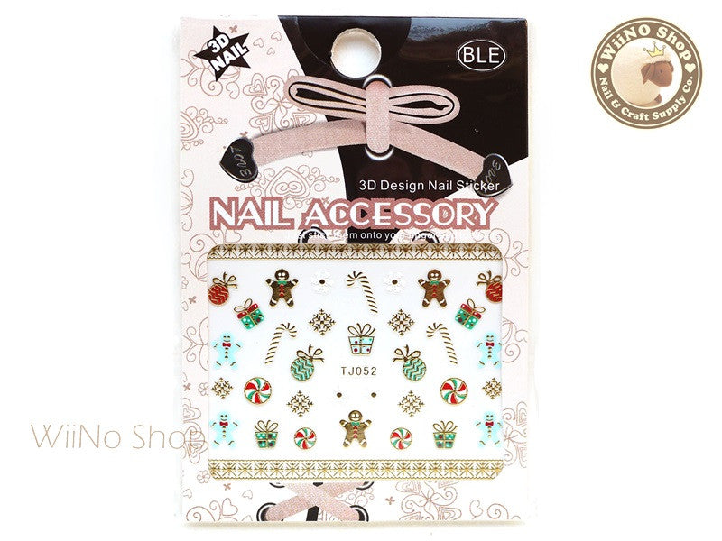 Gold Christmas Gingerbread Man Ornament Snowflake Nail Art Sticker - 1 pc (TJ052)