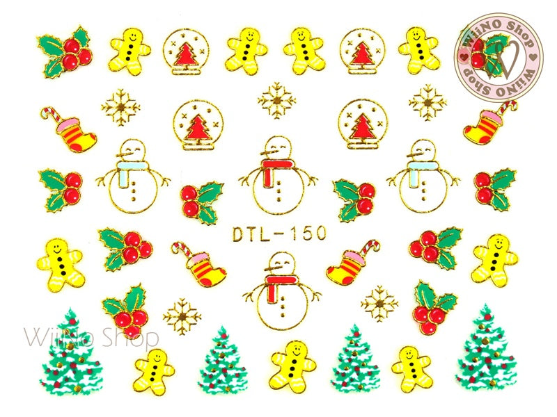 Gold Christmas Gingerbread Snowman Nail Art Sticker - 1 pc (DTL-150G)