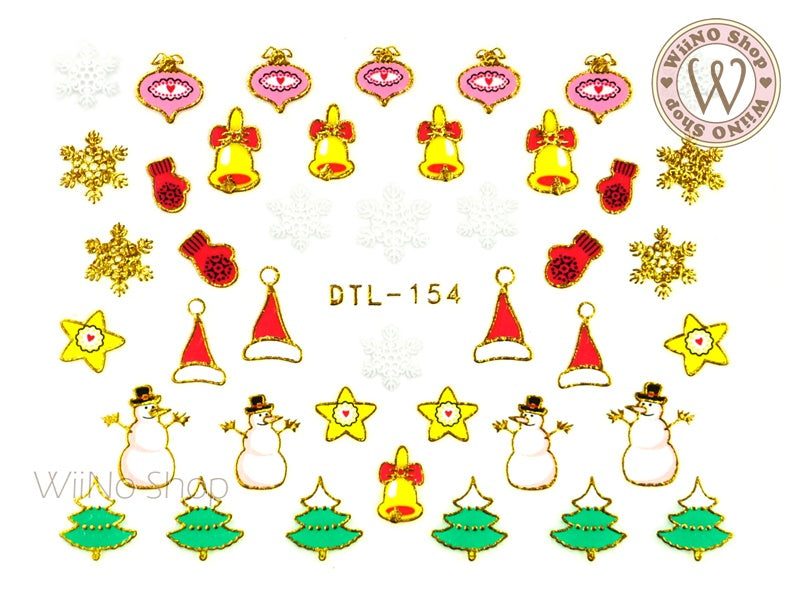 Gold Christmas Ornament Snowman Nail Art Sticker - 1 pc (DTL-154G)