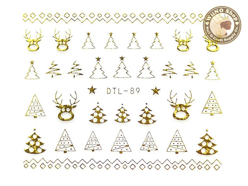 Gold Christmas Tree Reindeer Nail Art Sticker - 1 pc (DTL-89G)