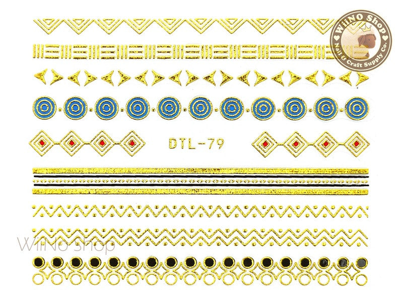 Gold Color Geometric Pattern Nail Art Sticker - 1 pc (DTL-79G)