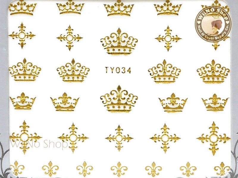 Gold Crown Cross Fleur De Lis Adhesive Nail Sticker Nail Art - 1 pc (TY034G)