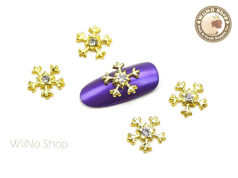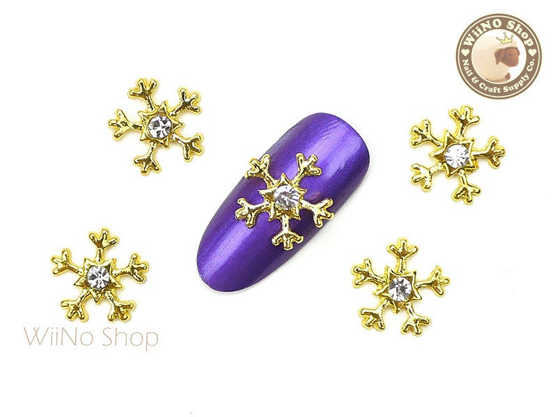 Gold Crystal Star Snowflake Nail Metal Charm - 2 pcs