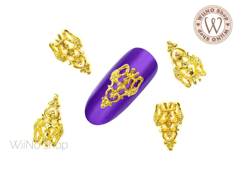 Gold Daina Vintage Hollow Pattern Nail Metal Charm - 2 pcs