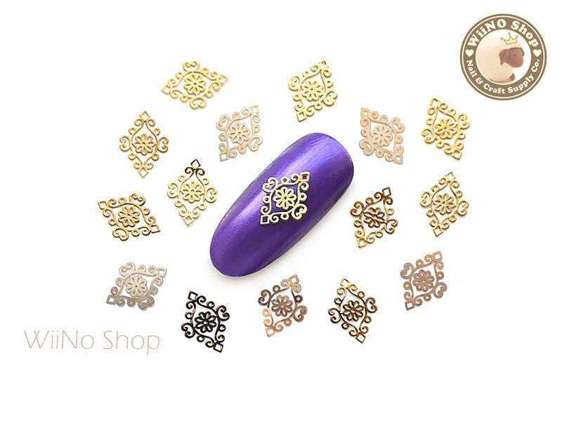 Gold Diamond Shaped Lace Pattern Ultra Thin Nail Art Metal Decoration - 25 pcs