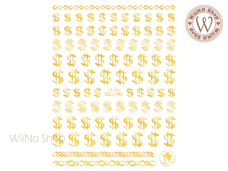 Gold Dollar Sign Adhesive Nail Art Sticker - 1 pc (CB-130G)