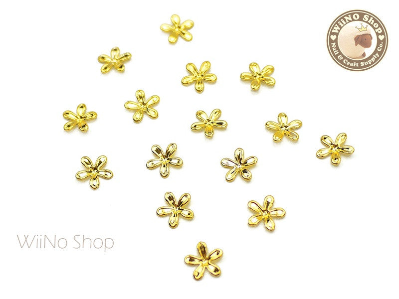Gold Five Petal Flower Nail Metal Charm - 2 pcs